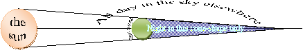Figure II.2: The daytime and night in the sky. Night is only in some regions below the corresponding orb, whereas in the orb itself it is all day. And in the case of the normal day on the earth, the outlet of the night is extended in space as a cone.