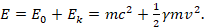 , and then its total energy equivalence, with relation to an observer moving at a constant (apparent) velocity