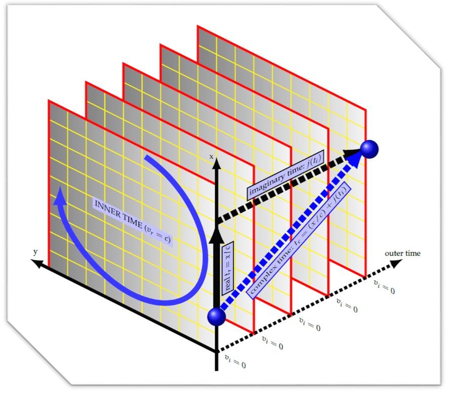 The actual flow of time, including the inner and outer levels, can be represented in terms of complex Euclidean space as absolute reference frame: