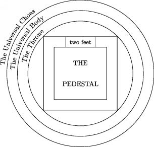 Figure 4.5: The Throne and what it contains down to the Pedestal. the Universal Body, which is the first physical existent, may be though of as the primary particle from which all other particles are being created perpetually, one by one, or it can also be though of as a cloud containing all other particles.
