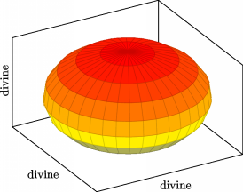 Figure 6.5: This sphere represents the three-dimensional infinite flat space, with out time. The fixed points of such space represent the immutable things as they exists in the fore-knowledge of God. The world appears for us to be changing because we view it sequentially in time.