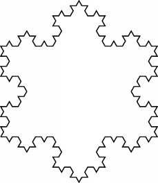 times the area of the original triangle, while the progression for the snowflake’s perimeter diverges to infinity. Consequently, the snowflake has a finite area bounded by an infinitely long line.