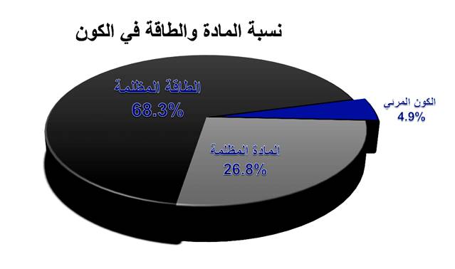 لقد أكدت أحدث هذه القياسات أن الكون يحتوي طاقة مظلمة بنسبة 71.3٪، والباقي هو مزيج من المادة المظلمة والمادة العادية بنسبة 27.4٪، وبواقع 22.7٪ من المادة المظلمة، و 4.5٪ من المادة العادية، كما هو موضح في الشكل التالي: